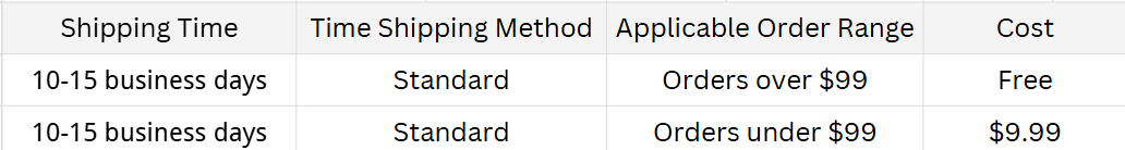 Receiving time = Processing time(3-5 working days) + Shipping time
